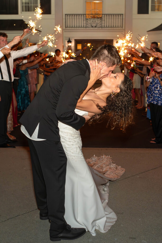 Before the night ended, guests grabbed sparklers and formed a tunnel for Brooke + Troy to run through on their way out the mansion doors. They laughed and shared a kiss while everyone cheered.